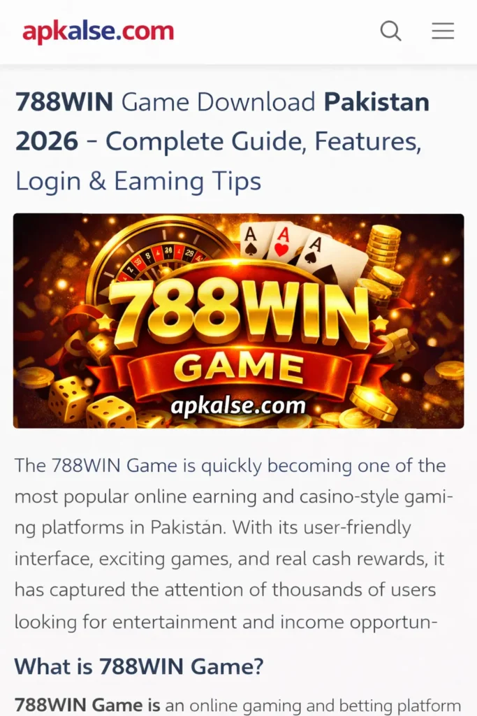 The 788WIN Game APK is quickly becoming one of the most popular online earning and casino-style gaming platforms in Pakistan. With its user-friendly interface, exciting games, and real cash rewards, it has captured the attention of thousands of users looking for entertainment and income opportunities.