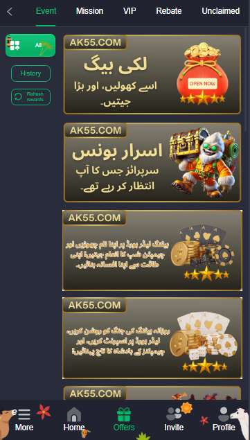 AK55 Game supports fast and secure withdrawals. Most platforms like this offer popular local payment options like EasyPaisa or JazzCash making it easy for users to cash out their winnings. Withdrawals are usually processed quickly, and the minimum withdrawal limit is kept reasonable for user convenience.