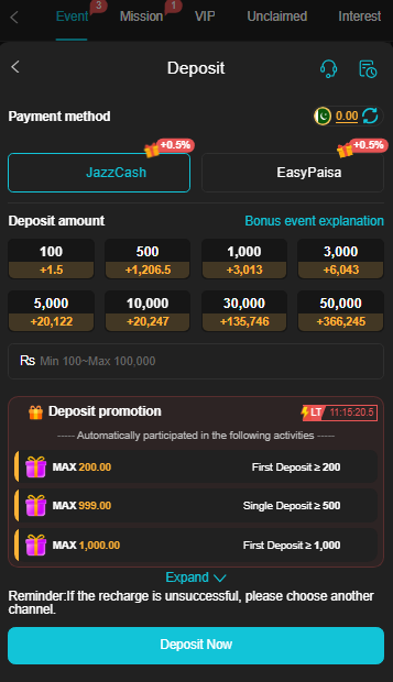 - First, log in to your CT 999 Game account and go to the “Wallet” or “Deposit” section. Choose your preferred payment method like JazzCash or EasyPaisa and enter the amount you want to deposit. Follow the on screen instructions to complete the payment.