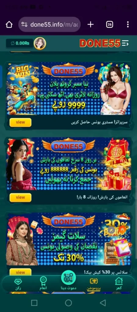 Yes, Done55 latest version free app periodically offers bonuses and promotional campaigns.