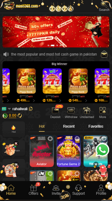 In addition, Masti365 login features a wide range of easy-to-play online slot machines. Each spin provides an opportunity to win instant cash, which makes the platform one of the most engaging online slots Pakistan options available today.