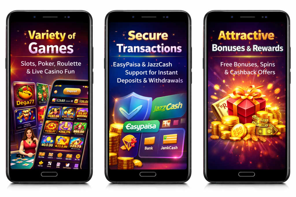 The platform supports secure payment gateways including EasyPaisa and JazzCash, allowing instant deposits and withdrawals without delays. All transactions are encrypted, ensuring player safety. - Attractive Bonuses & Offers