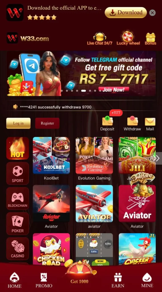 In addition, the responsive layout adapts to different screen sizes. Furthermore, new users can easily understand how the platform works. As a result, W33 latest earning APK remains accessible to both beginners and experienced players.