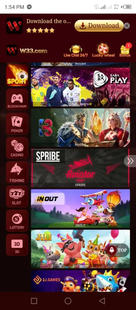 In addition, modern players prefer gaming platforms that are easy to understand and reliable to use. W33 APK focuses on delivering a simple interface and organized features that allow users to navigate the platform easily. Furthermore, the platform provides access to multiple game categories, which adds variety to the gaming experience. Consequently, users can explore different gameplay styles without switching between multiple applications.